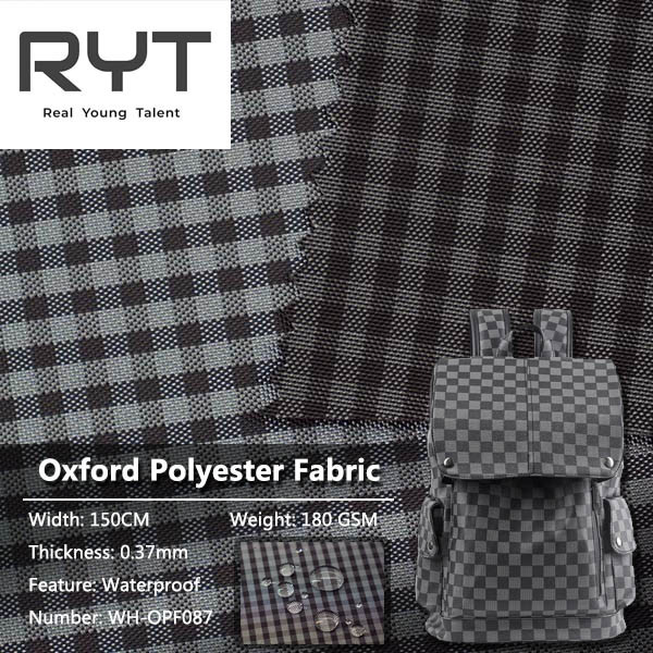 Oxford-Webart kennzeichnet Korbgeflechtbau sowie Glanzende. Beschichtet im Uräthan, stößt dieses Gewebe Wasser ab und widersteht Rissen und Rissen. Die Gewebequalität von Oxford-Stoff ist verhältnismäßig hell und dünn, aber das Gewebe fühlt sich weicher, und Nichtausdehnung Oxford-Stoff kann entsprechend Kundenbedarf produziert werden. Diese Art des Gewebes kann mit Rucksack, Sofa, Auto, Hauptgewebe, usw. zutreffen. Wir raten Ihnen, Polyester-Oxford-Gewebe entsprechend verschiedenen Anwendungen und verschiedenen Anforderungen zu wählen.